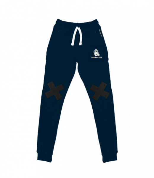 Pánské tepláky s originálním potiskem UAX! ve slim střihu s černými křížky na kolenou. Potisk je natištěný na kousku látky a našitý na nohavici. Tepláky mají kapsy uzavřeny zipem. Pánské tepláky SLIM CROSS jsou vyrobeny z elastického materiálu, který umožňuje velmi pohodlné nošení bez omezení pohybu. Materiál je kvalitní stálobarevný a stále držící tvar. Mix & Match - Vybírej z mnoha originálních potisků.