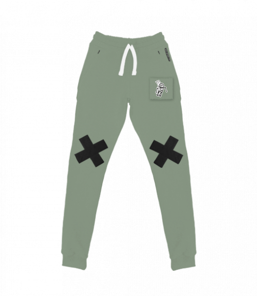 Pánské tepláky s originálním potiskem UAX! ve slim střihu s černými křížky na kolenou. Potisk je natištěný na kousku látky a našitý na nohavici. Tepláky mají kapsy uzavřeny zipem. Pánské tepláky SLIM CROSS jsou vyrobeny z elastického materiálu, který umožňuje velmi pohodlné nošení bez omezení pohybu. Materiál je kvalitní stálobarevný a stále držící tvar. Mix & Match - Vybírej z mnoha originálních potisků.