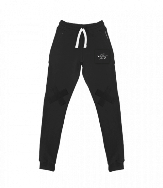 Pánské tepláky s originálním potiskem UAX! ve slim střihu s černými křížky na kolenou. Potisk je natištěný na kousku látky a našitý na nohavici. Tepláky mají kapsy uzavřeny zipem. Pánské tepláky SLIM CROSS jsou vyrobeny z elastického materiálu, který umožňuje velmi pohodlné nošení bez omezení pohybu. Materiál je kvalitní stálobarevný a stále držící tvar. Mix & Match - Vybírej z mnoha originálních potisků.