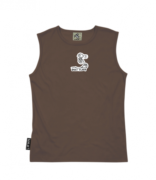 Pánské triko bez rukávů MUSCLE SHIRT pro muže s potiskem 1036 OVČÍ VLNA v barvě CHESTNUT