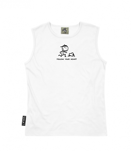 Pánské triko bez rukávů MUSCLE SHIRT pro muže s potiskem 1063 FOLOW YOUR HEART v barvě WHITE