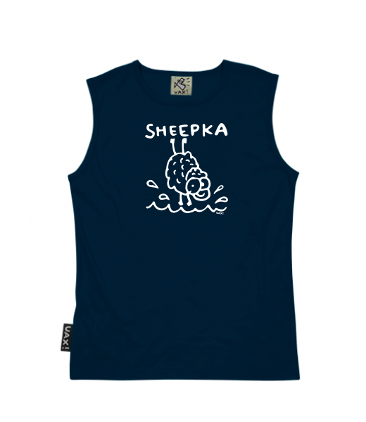 Pánské triko bez rukávů MUSCLE SHIRT pro muže s potiskem 1077 SHEEPKA v barvě DARK NAVY