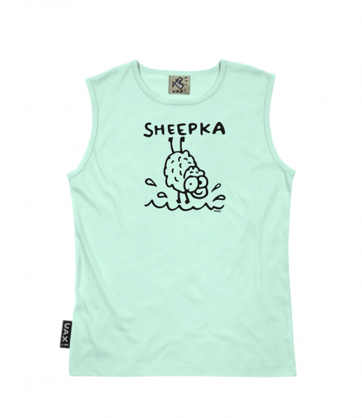 Pánské triko bez rukávů MUSCLE SHIRT pro muže s potiskem 1077 SHEEPKA v barvě MINT