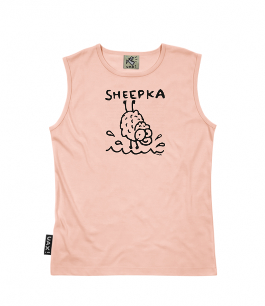 Pánské triko bez rukávů MUSCLE SHIRT pro muže s potiskem 1077 SHEEPKA v barvě PEACH