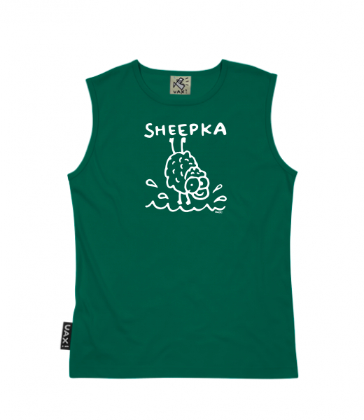 Pánské triko bez rukávů MUSCLE SHIRT pro muže s potiskem 1077 SHEEPKA v barvě UNIVERSITY GREEN