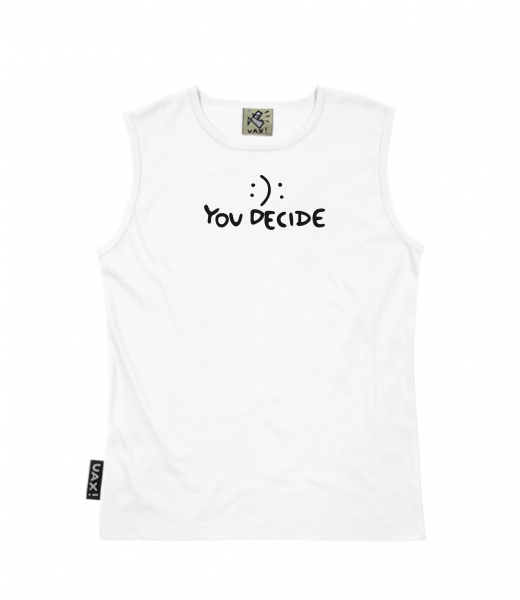 Pánské triko bez rukávů MUSCLE SHIRT pro muže s potiskem 1078 YOU DECIDE v barvě WHITE