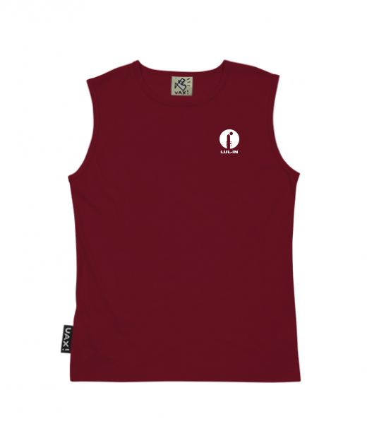 Pánské triko bez rukávů MUSCLE SHIRT pro muže s potiskem 620 LUL IN v barvě DARK RED
