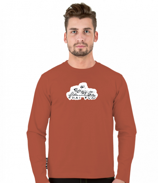 Tričko uax s dlouhým rukávem a potiskem pro muže s potiskem 1041 THAI FUN v barvě TERRA