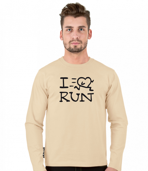 Tričko uax s dlouhým rukávem a potiskem pro muže s potiskem 1088 I LOVE RUN v barvě CARAMEL