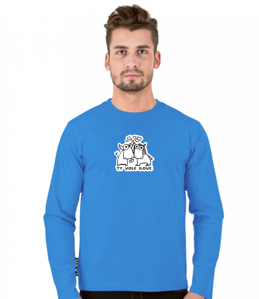 Tričko uax s dlouhým rukávem a potiskem pro muže s potiskem 1089 TY VOLE I LOVE v barvě CAPRI BLUE