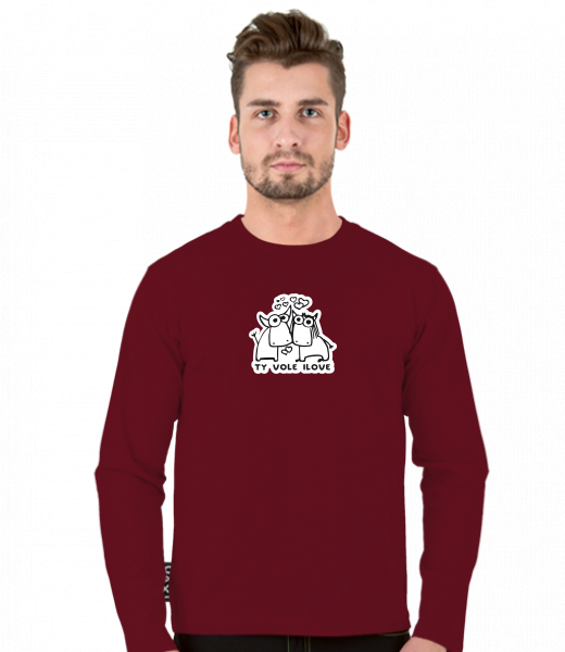 Tričko uax s dlouhým rukávem a potiskem pro muže s potiskem 1089 TY VOLE I LOVE v barvě DARK RED