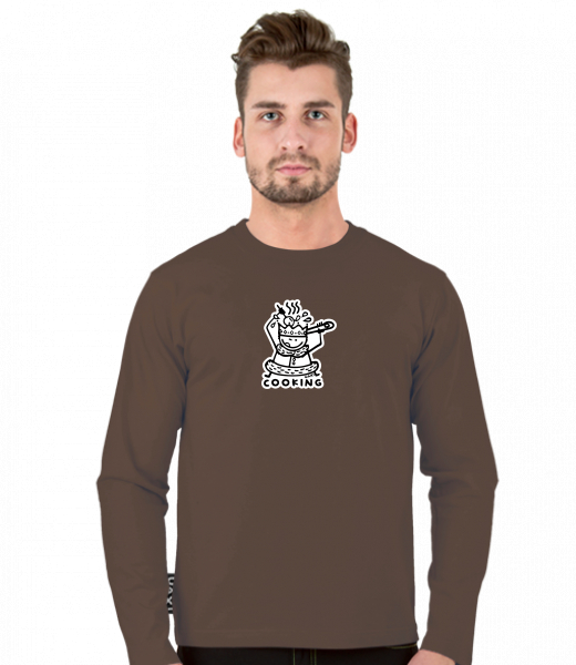 Tričko uax s dlouhým rukávem a potiskem pro muže s potiskem 1117 COOKING v barvě CHESTNUT