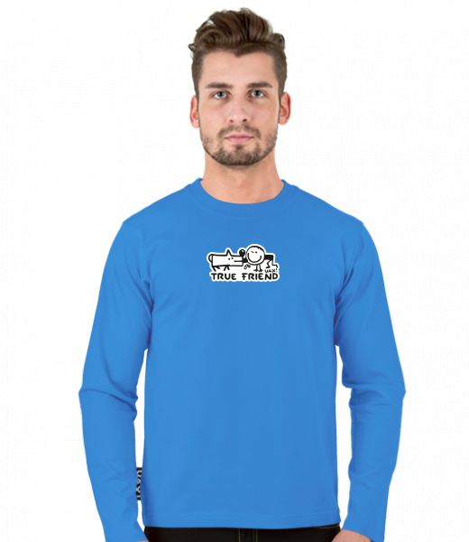 Tričko uax s dlouhým rukávem a potiskem pro muže s potiskem 1123 TRUE FRIEND v barvě CAPRI BLUE