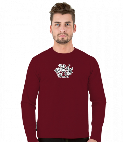 Tričko uax s dlouhým rukávem a potiskem pro muže s potiskem 1126 SUPER MAM v barvě DARK RED