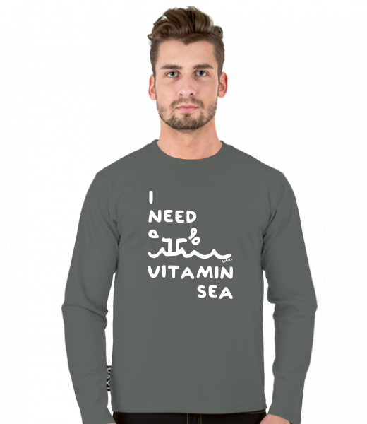 Tričko uax s dlouhým rukávem a potiskem pro muže s potiskem 1132 I NEED VITAMIN SEA v barvě DARK GRAY