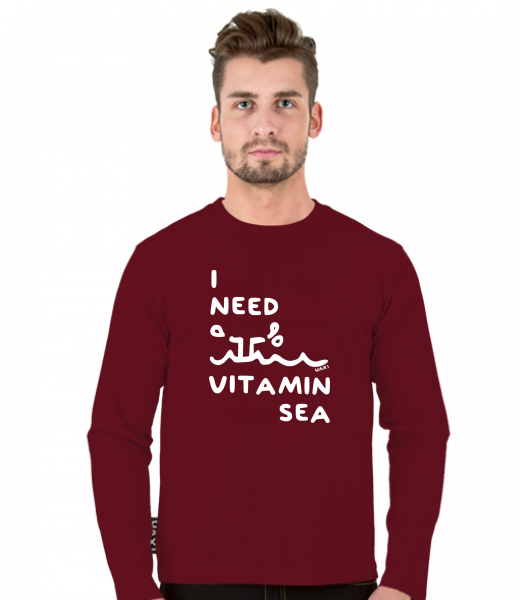 Tričko uax s dlouhým rukávem a potiskem pro muže s potiskem 1132 I NEED VITAMIN SEA v barvě DARK RED