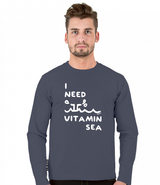 Tričko uax s dlouhým rukávem a potiskem pro muže s potiskem 1132 I NEED VITAMIN SEA v barvě GRAY INK