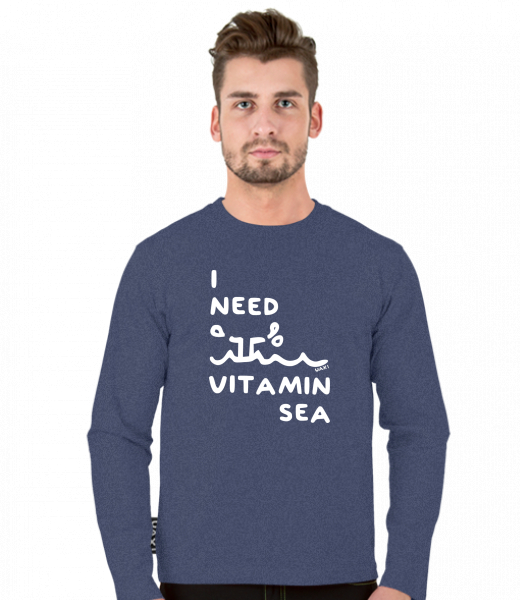 Tričko uax s dlouhým rukávem a potiskem pro muže s potiskem 1132 I NEED VITAMIN SEA v barvě JEANS