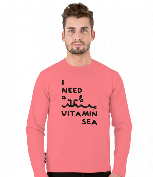 Tričko uax s dlouhým rukávem a potiskem pro muže s potiskem 1132 I NEED VITAMIN SEA v barvě LOSOSOVA