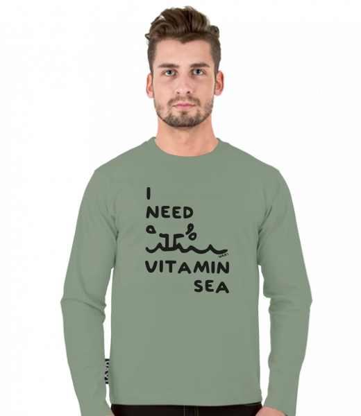 Tričko uax s dlouhým rukávem a potiskem pro muže s potiskem 1132 I NEED VITAMIN SEA v barvě OLIVA