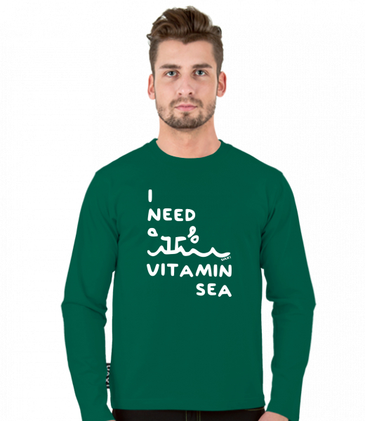 Tričko uax s dlouhým rukávem a potiskem pro muže s potiskem 1132 I NEED VITAMIN SEA v barvě UNIVERSITY GREEN