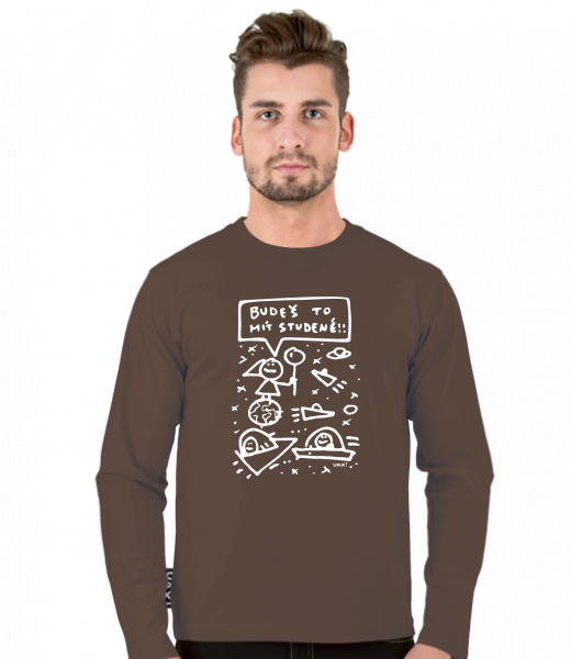 Tričko uax s dlouhým rukávem a potiskem pro muže s potiskem 1386 BUDEŠ TO MÍT STUDENÉ v barvě CHESTNUT