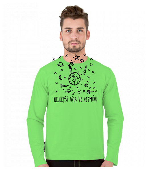 Tričko uax s dlouhým rukávem a potiskem pro muže s potiskem 1387 NEJLEPŠÍ TÁTA VE VESMÍRU v barvě APPLE