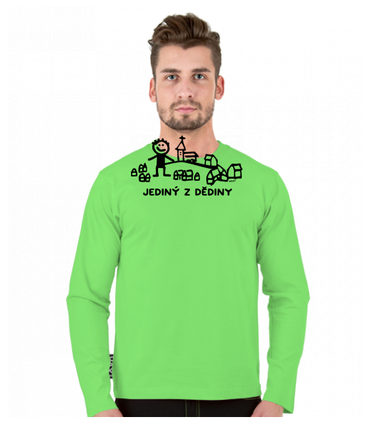 Tričko uax s dlouhým rukávem a potiskem pro muže s potiskem 1393 JEDINÝ Z DĚDINY v barvě APPLE