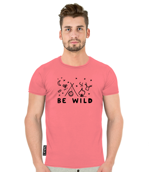Pánské tričko BALI pro muže s potiskem 1174 BE WILD v barvě LOSOSOVA