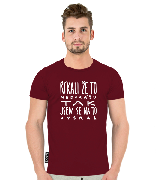 Vyrábíme udržitelné oblečení UAX! - ručně šité v Česku uaxMuži uaxVšechny produktyTričkaTRIČKO BALIpotisk 1366 - ŘÍKALI ŽE TO NEDOKÁŽU TAK JSEM SE NA TO VYSRALDARK RED