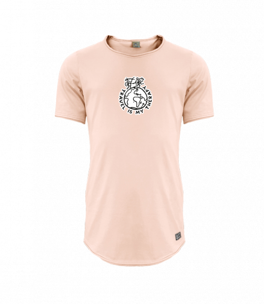 Pánské tričko PARKOUR LONG pro muže s potiskem 1240 TRAVEL IS MY THERAPY v barvě CAPPUCINO
