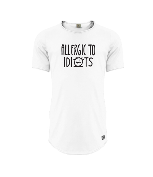 Pánské tričko PARKOUR LONG pro muže s potiskem 1354 ALLERGIC TO IDIOTS v barvě WHITE