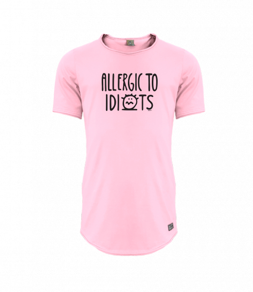Pánské tričko PARKOUR LONG pro muže s potiskem 1354 ALLERGIC TO IDIOTS v barvě BABY PINK