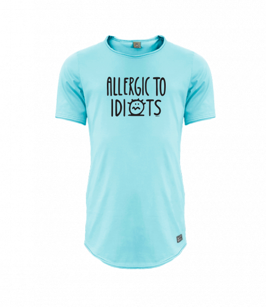 Pánské tričko PARKOUR LONG pro muže s potiskem 1354 ALLERGIC TO IDIOTS v barvě PASTEL BLUE