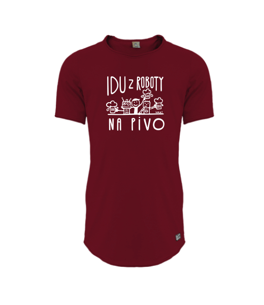 Pánské tričko PARKOUR LONG pro muže s potiskem 1369 IDU Z ROBOTY NA PIVO v barvě DARK RED