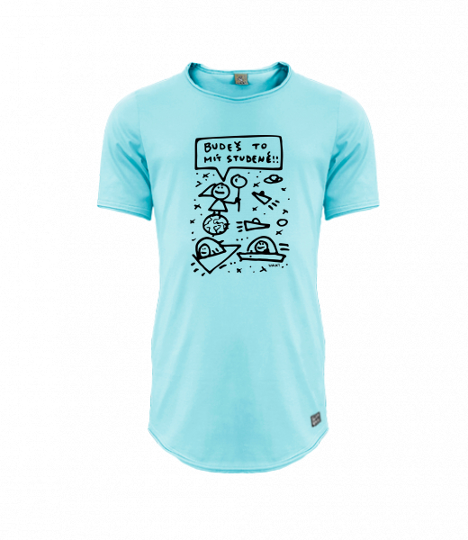 Pánské tričko PARKOUR LONG pro muže s potiskem 1386 BUDEŠ TO MÍT STUDENÉ v barvě PASTEL BLUE