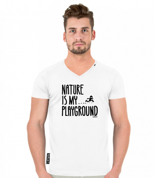 Pánské tričko SLIM FIT s výstřihem do V pro muže s potiskem 1160 NATURE IS MY PLAYGROUND v barvě WHITE