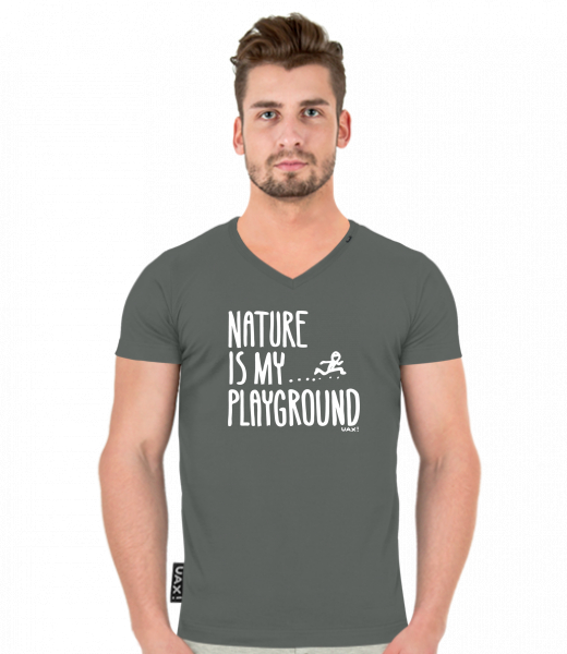 Vyrábíme udržitelné oblečení UAX! - ručně šité v Česku uaxMuži uaxVšechny produktyTričkaTRIČKO SLIM FIT VÝSTŘIH Vpotisk 1160 - NATURE IS MY PLAYGROUNDDARK GRAY