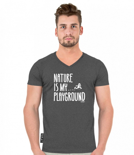 Pánské tričko SLIM FIT s výstřihem do V pro muže s potiskem 1160 NATURE IS MY PLAYGROUND v barvě GRAFIT