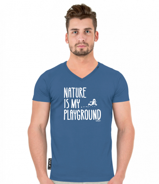 Pánské tričko SLIM FIT s výstřihem do V pro muže s potiskem 1160 NATURE IS MY PLAYGROUND v barvě MOONLIGHT BLUE