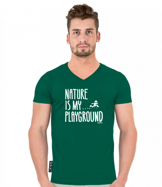 Pánské tričko SLIM FIT s výstřihem do V pro muže s potiskem 1160 NATURE IS MY PLAYGROUND v barvě UNIVERSITY GREEN