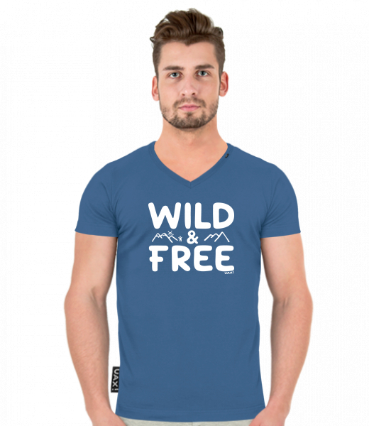 Pánské tričko SLIM FIT s výstřihem do V pro muže s potiskem 1161 WILD AND FREE v barvě MOONLIGHT BLUE