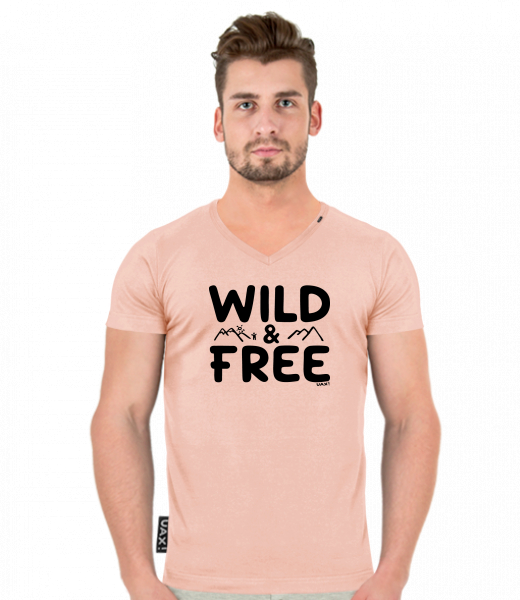 Pánské tričko SLIM FIT s výstřihem do V pro muže s potiskem 1161 WILD AND FREE v barvě PEACH