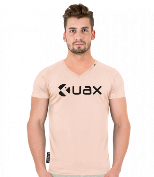 Střih trička a zpracování: Upnutější SLIM střih trička s véčkovým výstřihem. Lem průkrčníku je olemovaný bavlnou. Do lemu průkrčníku je všitá malá tkaná etiketa UAX. Tričko má v bočním švu všitou tkanou etiketu UAX.