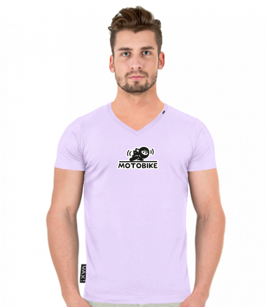Pánské tričko SLIM FIT s výstřihem do V pro muže s potiskem 1216 MOTOBIKE v barvě LAVENDER