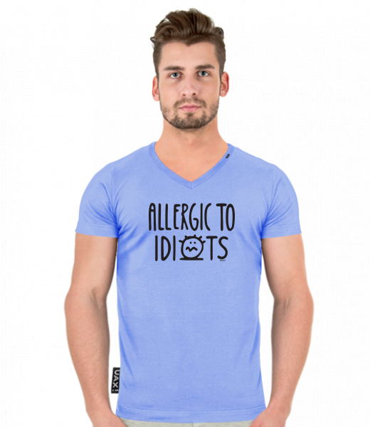 Pánské tričko SLIM FIT s výstřihem do V pro muže s potiskem 1354 ALLERGIC TO IDIOTS v barvě VERY PERI