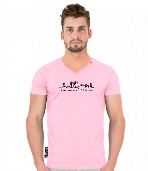 Vyrábíme udržitelné oblečení UAX! - ručně šité v Česku uaxMuži uaxVšechny produktyTričkaTRIČKO SLIM FIT VÝSTŘIH Vpotisk 1355 - MILUJEME BESKYDY 1BABY PINK