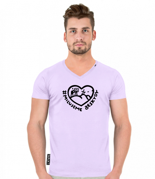 Pánské tričko SLIM FIT s výstřihem do V pro muže s potiskem 1356 MILUJEME BESKYDY 2 v barvě LAVENDER