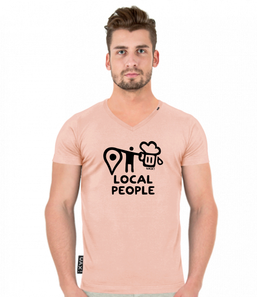 Pánské tričko SLIM FIT s výstřihem do V pro muže s potiskem 1360 LOCAL PEOPLE BIG v barvě PEACH