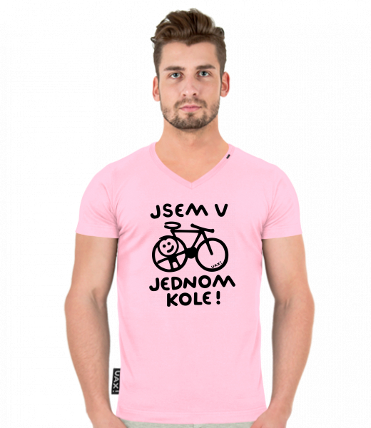 Pánské tričko SLIM FIT s výstřihem do V pro muže s potiskem 1362 JSEM V JEDNOM KOLE v barvě BABY PINK